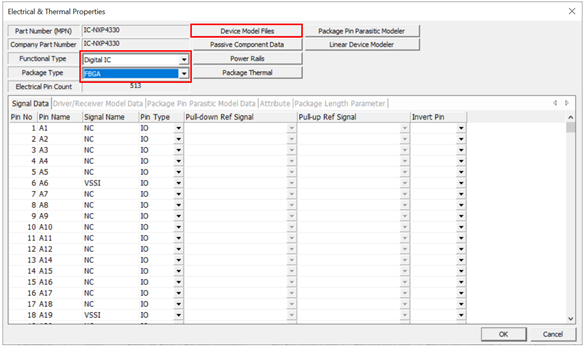 Select Digital IC as a Functional Type. Select FBGA as a Package Type. Click Device Model Files. The Device Model Files dialog displays.