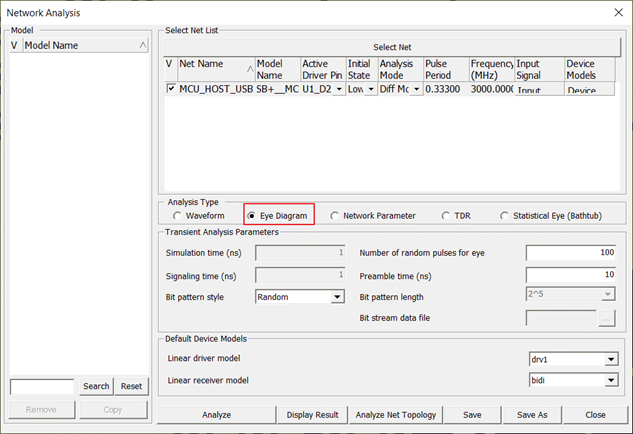 - Select Eye Diagram for Analysis Type.