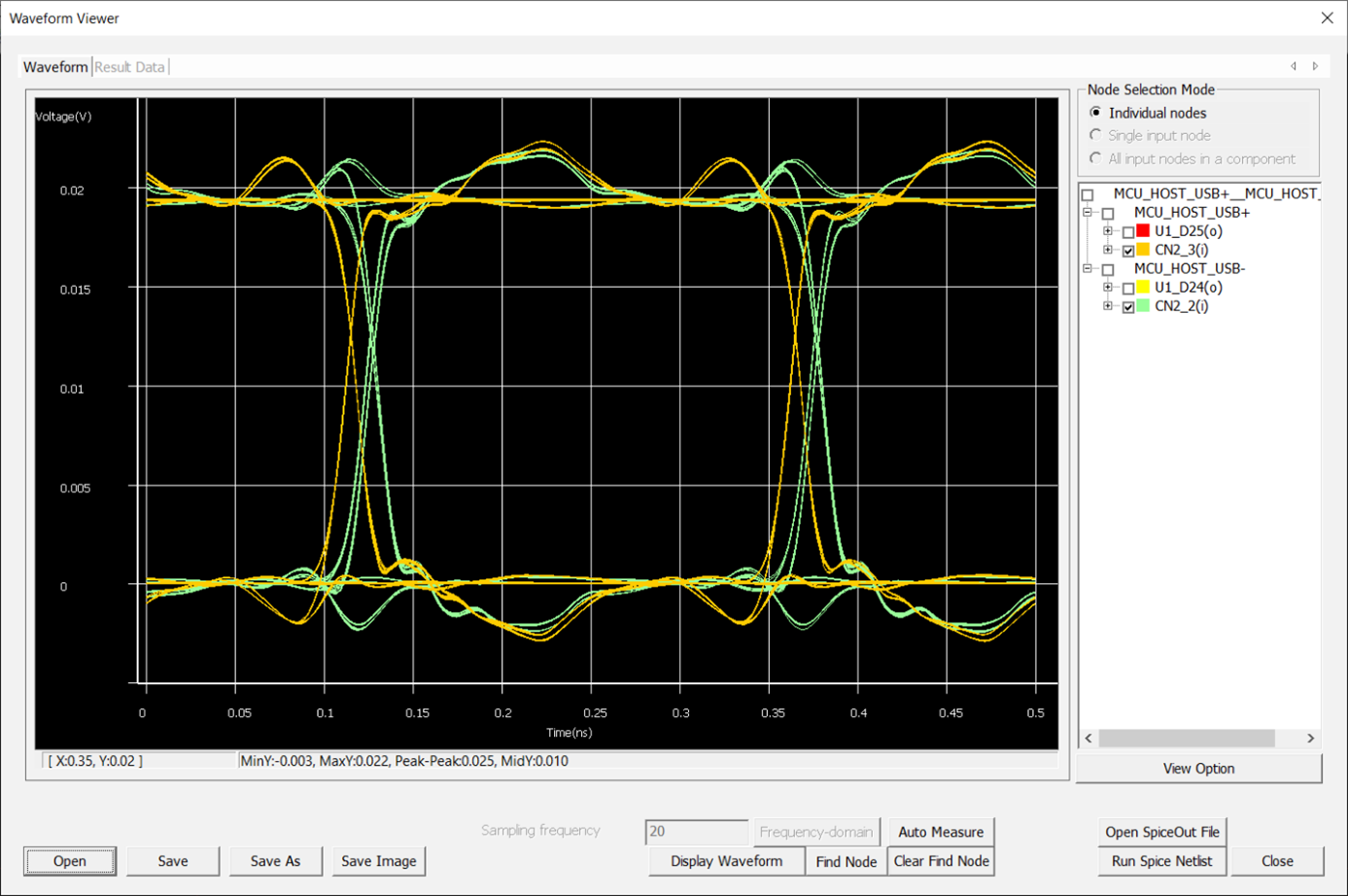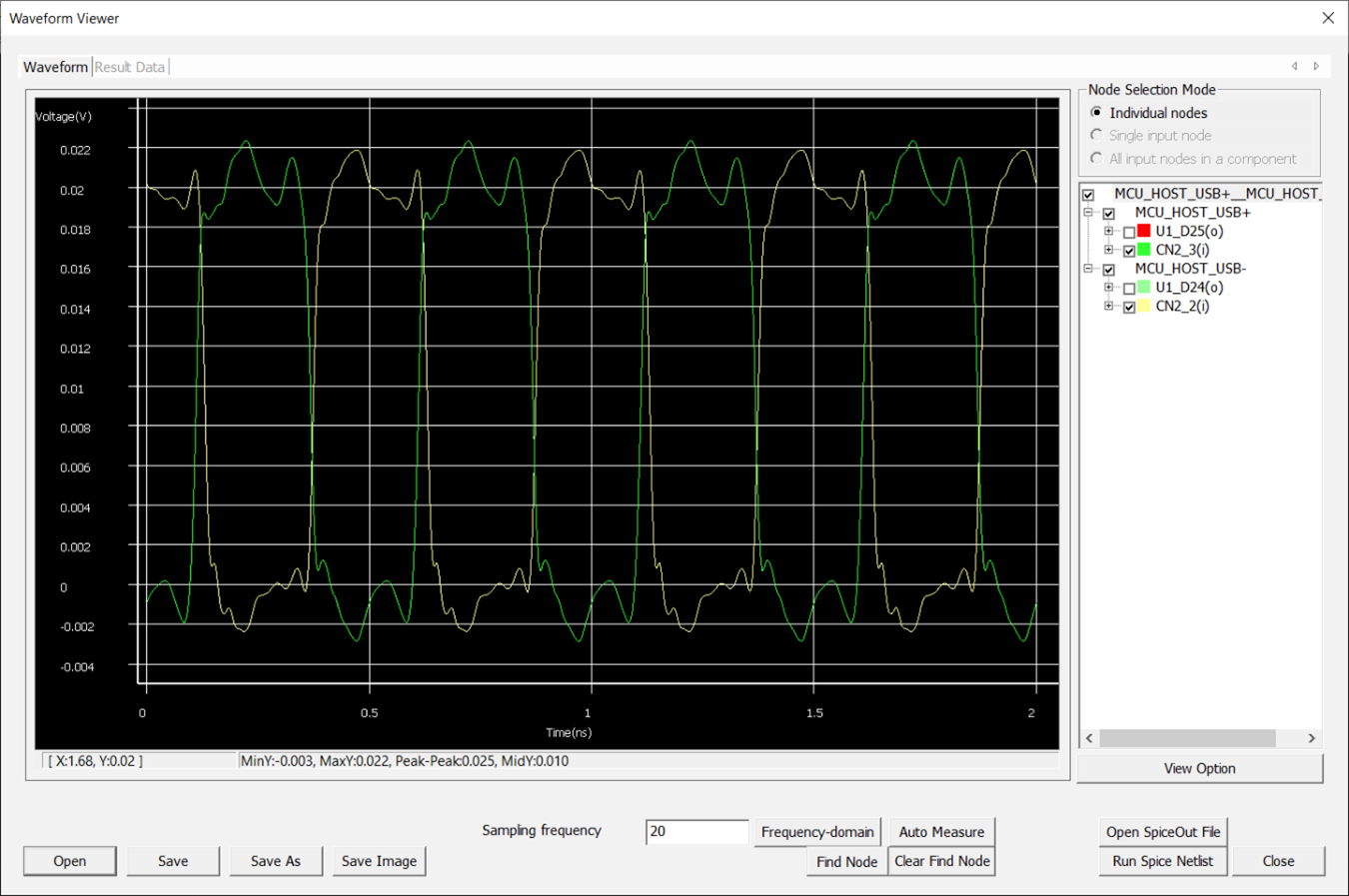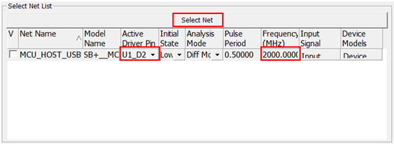 - You can set Frequency for the signal on Network analysis dialog and then choosing the U1-D25 as the Active Driver Pin.
