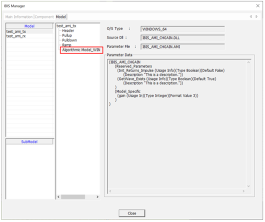 By exploring the Algorithmic model, you can check the reserved parameters of the IBIS-AMI model about the RX and TX.