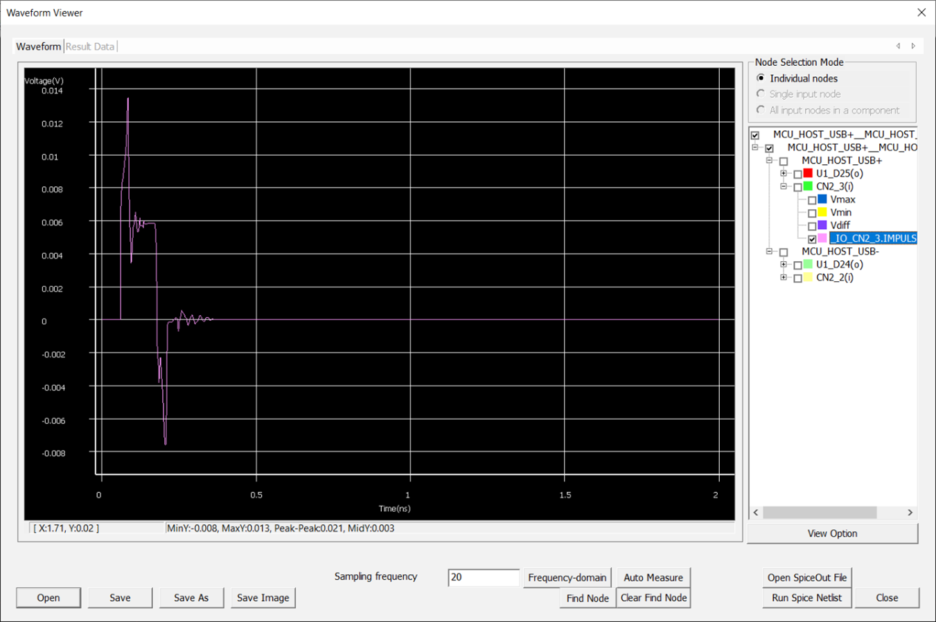 - For checking the impulse response, uncheck all waveform and select IO_CN2_3.IMPULSE. And then right click and select zoom all.