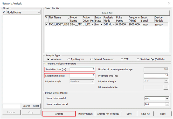 When the waveform analysis starts, electromagnetic simulation extracts the SPICE model for the selected net.