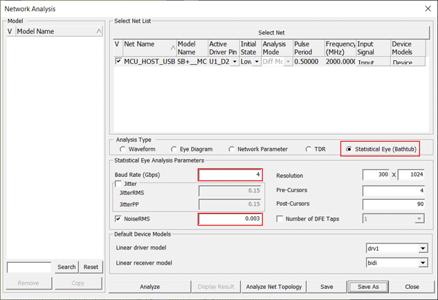 - Select Statistical Eye (Bathtub) for Analysis Type.
