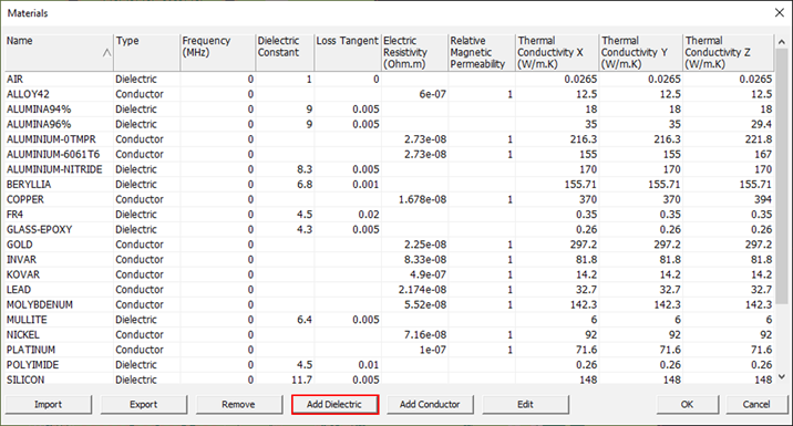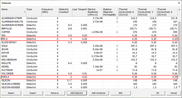 In this step, you will add a new dielectric material FR4.0 and PSR3.0.