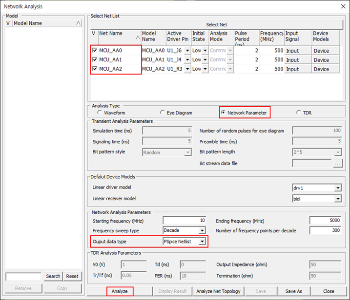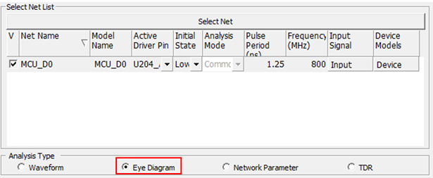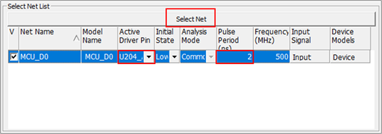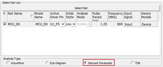 From the menu bar, click Analysis > Network Analysis, change the Pulse Period from 2 (ns) to 1.0 (ns) and