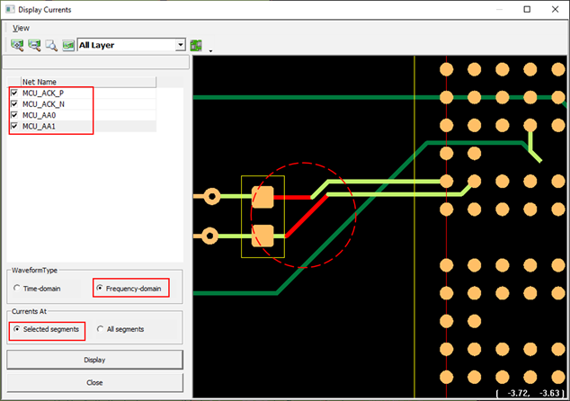Move the mouse cursor over 1st net trace connected to the driver, press the