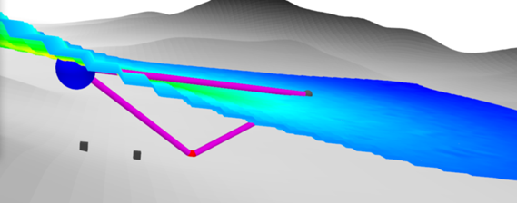 Figure 6. An example of a ground-reflected ray using Urban Intelligent Ray Tracing.