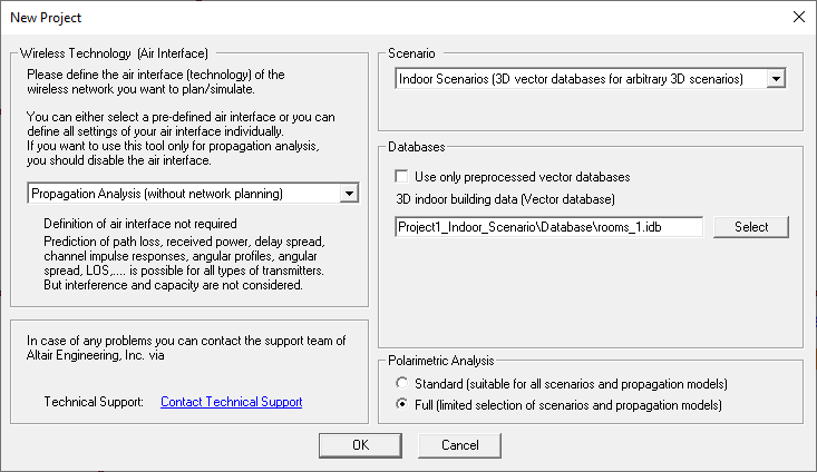 - Under Scenario, from the drop-down list, select Indoor Scenarios (3D vector databases for arbitrary 3D scenarios).