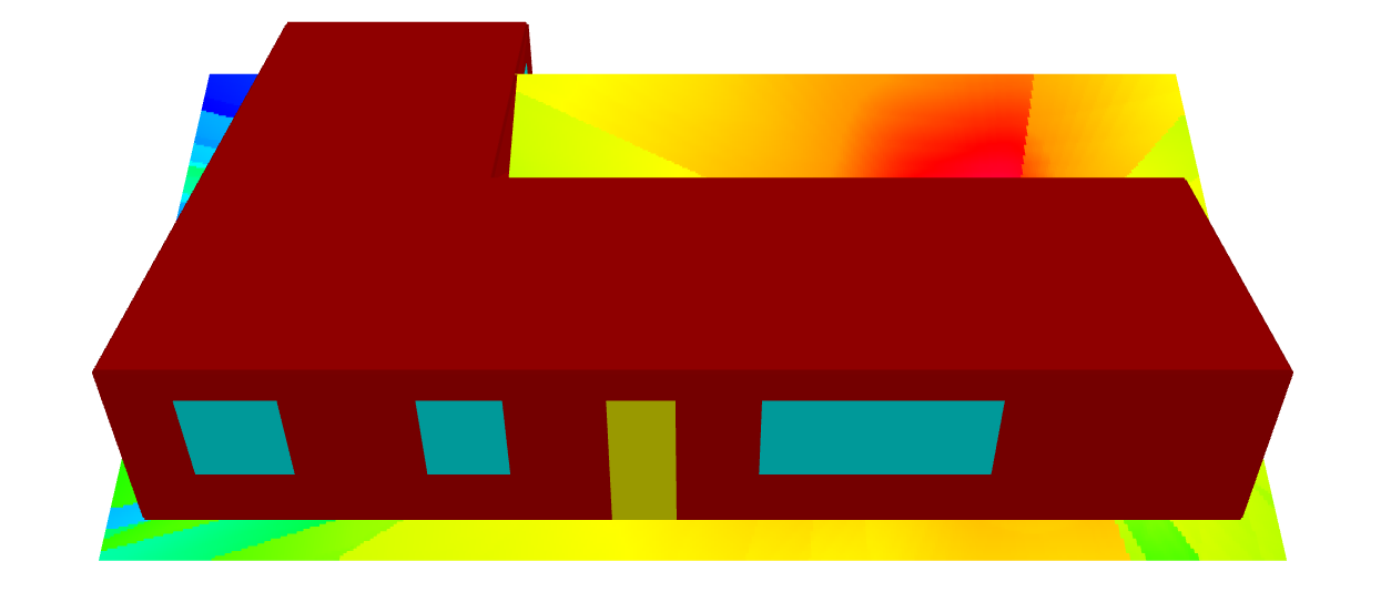 Figure 3. A 3D view of the model with power prediction results displayed only on the angled prediction plane.