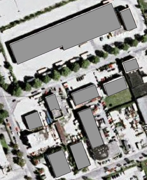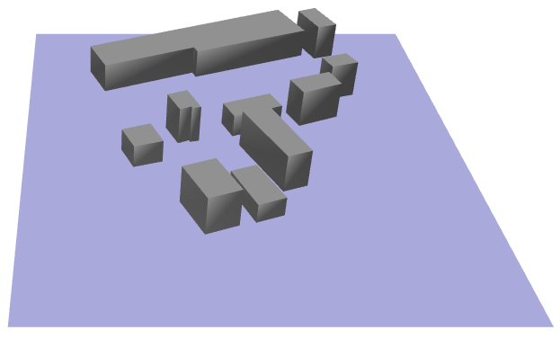 Figure 4. The 3D view of the buildings after their heights were modified. The aerial photograph was hidden for demonstrative purposes.