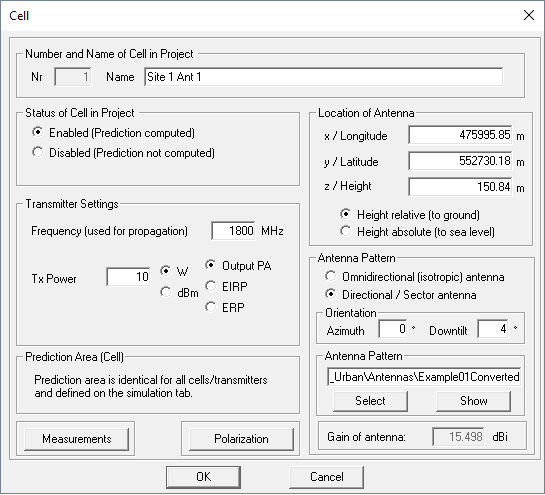- Under Location of Antenna, in the z / Height field, enter a value of 150.84 m.