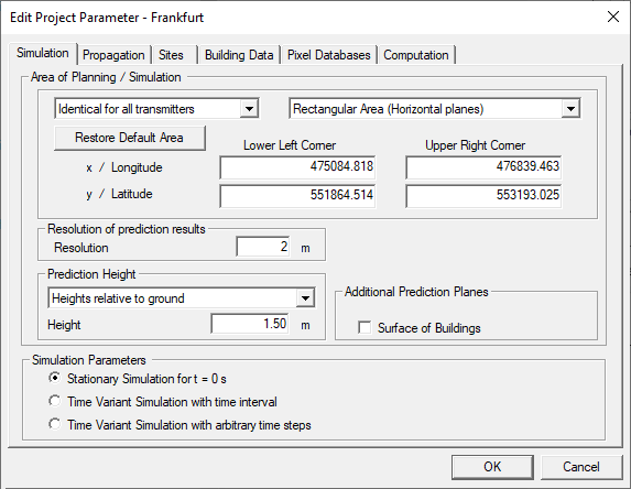 The prediction results will be computed with a resolution (grid) of 2 m.
