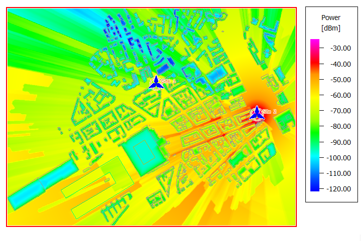 Figure 1. Power calculated for Site 2 Antenna 3 using the COST 231 - extended Walfisch-Ikegami model.