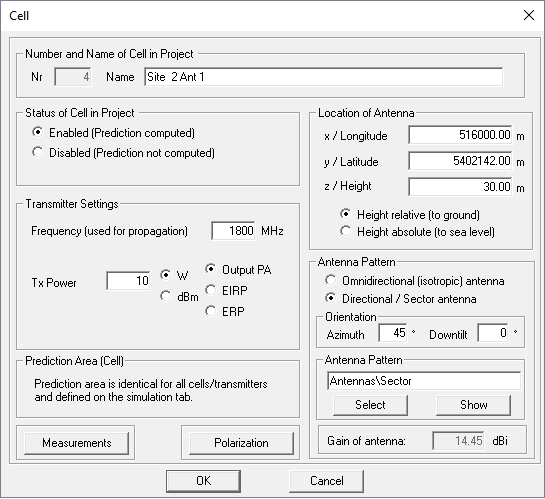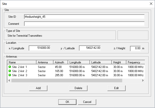- Under Location of Antenna, in the z / Height field, enter a value of 30 m.