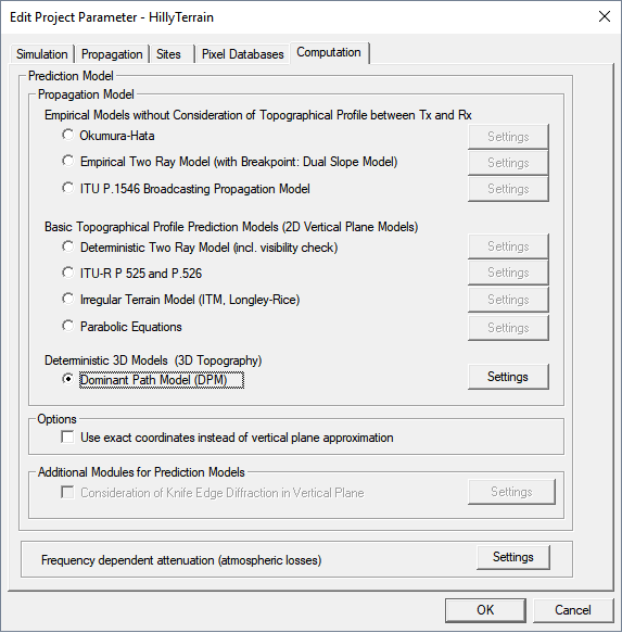 Select the dominant path model (DPM) as computation method.