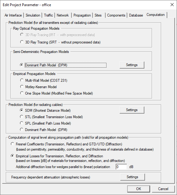 Note: The dominant path model is fast and can be used for network planning.