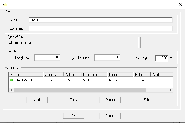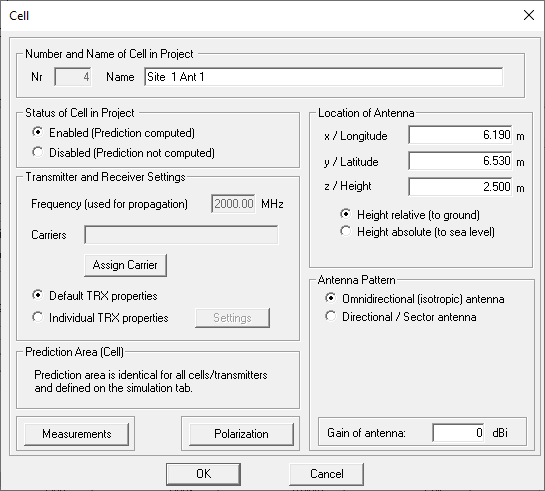 assign a carrier. The antenna is placed at a height of 2.5 m above ground.