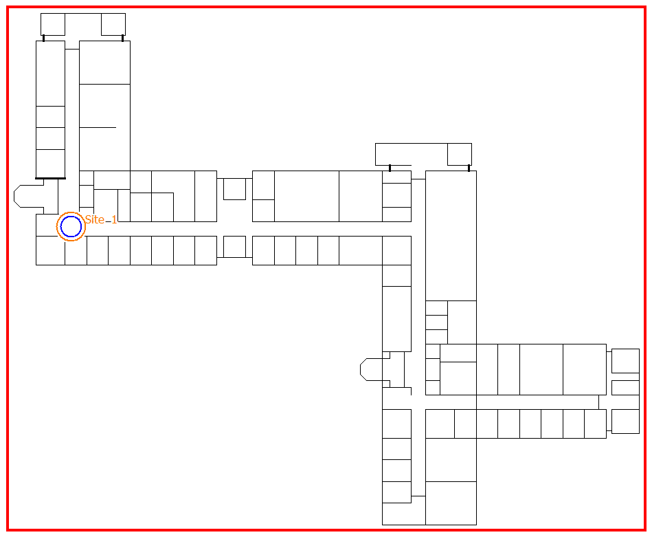 The first antenna is placed at the intersection of the corridors (top, left) at a