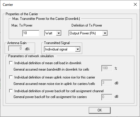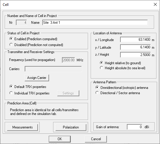 assign a carrier. The antenna is placed at a height of 2.5 m above ground.