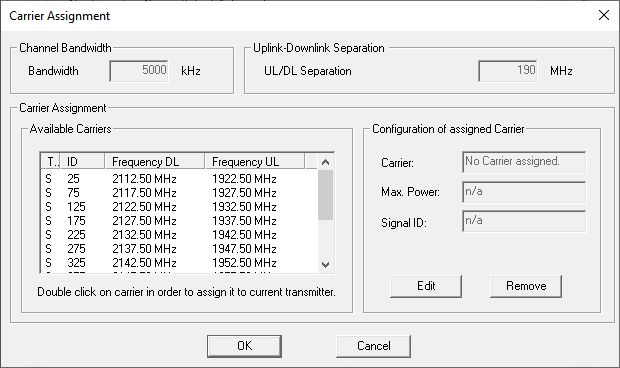 The Carrier Assignment dialog is displayed.Figure 5. The Carrier Assignment dialog.