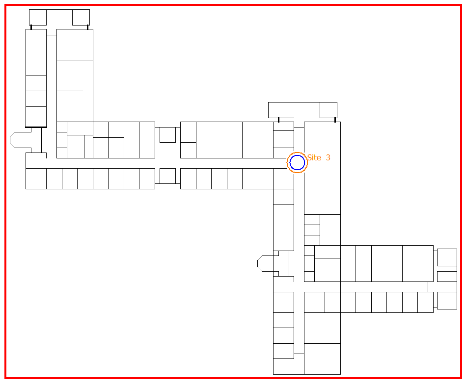 The third antenna is placed at the intersection of the corridors (center, right) at a