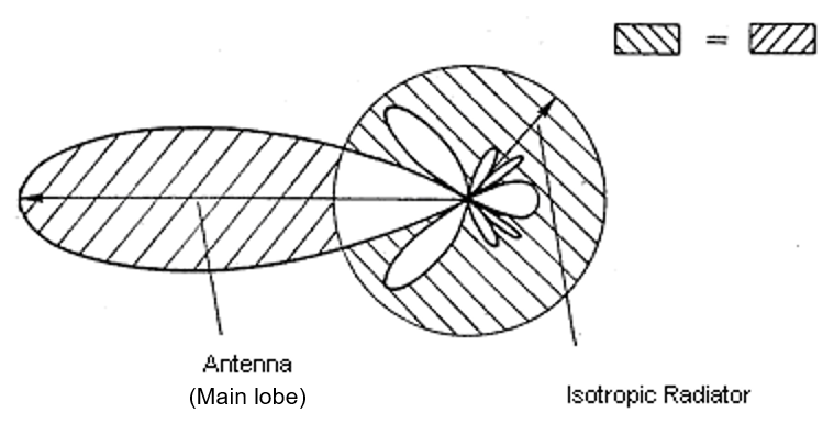 indicates the maximum radiated power density and indicates the power density radiated by the isotropic radiator.