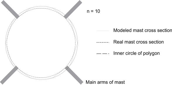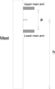 Sub-arms are optional. If they are used, they are always fixed at the tube. Similar to the arms, the distance between the sub-arms is also user defined. The sub-arms are vertically centered to the tube. Their azimuth orientation is defined by the user and is similar to the azimuth of the antenna itself.