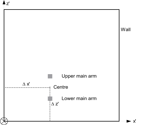 The objects describing the scenario must be positioned relative to one another. This can be defined via x-y-z-coordinates in the coordinate system. As this can be complicated, MASC generates the coordinates automatically after requesting some simple parameters from the user. All user entered values are values relative to the border of the wall, mast or arm.