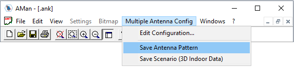 project settings (.ank) and must be saved separately via the menu Multiple Antenna Config > Save Antenna Pattern to be used in other radio network planning tools.Figure 1. Saving antenna patterns.