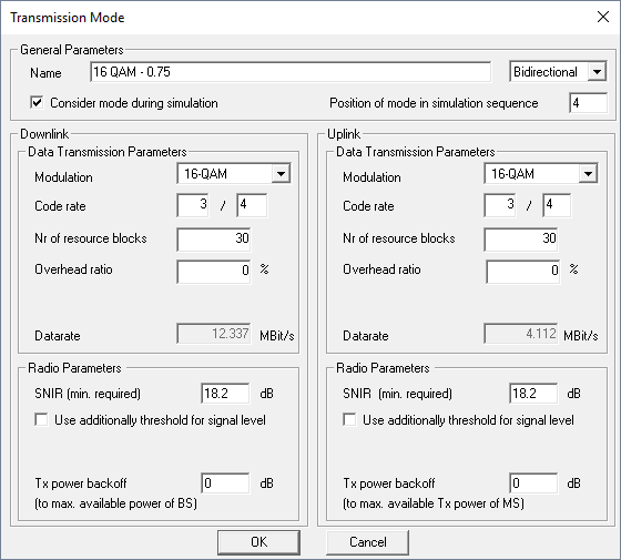 If this option is enabled, the transmission mode will be considered during network planning simulation. Transmission modes which are specified to be not considered during simulation are display with red (see Figure 1).