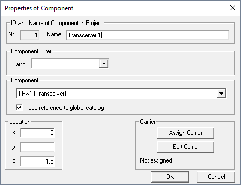 - In case of a radiating component, the carrier to be used by this component can be assigned and edited using the corresponding buttons.