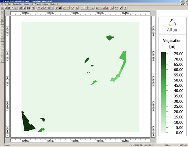 Vegetation databases contain information about the height at a given location. The databases are based on pixel matrices. Each pixel defines the height for a given location (for example, the center of the pixel).