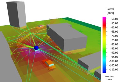 The following example shows a time-variant car-to-car communication scenario with a transmitter mounted on top of a moving vehicle: