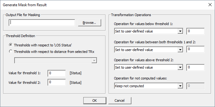 This option allows you to create a mask file based on the currently loaded result file. A mask can be generated considering numerous parameters.