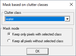 This option allows you to mask result data according to areas belonging to a specific clutter / morpho class. After selecting a clutter / morpho database a dialog opens where a clutter / morpho class can be selected for applying a mask mode.