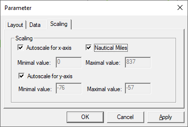 The unit for distance on a 2D value plot can be changed to nautical miles by clicking on