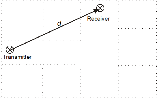 This model computes the path loss similar to the free space loss with an adjustable exponent and offset. Herewith it assumes that the excess path loss (in dB) is linearly dependent on the distance with a specific attenuation coefficient n: