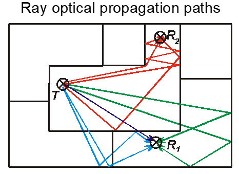As smaller wavelengths (higher frequencies) are considered, the wave propagation becomes similar to the propagation of light. Therefore a radio ray is assumed to propagate along a straight line influenced only by refraction, reflection, diffraction or scattering (see Figure 1) which is the concept of geometrical optics (GO). The criterion taken into account for this modeling approach is that the wavelength should be much smaller in comparison to the extension of the considered obstacles, which are typically the walls of a building. At the frequencies used for mobile communication networks, this criterion is also sufficiently fulfilled inside buildings.