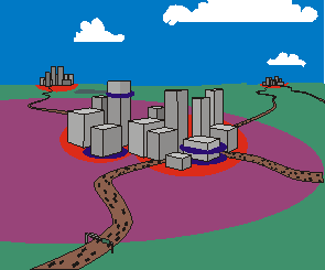 | macro cell (large cell, terrain) | 1 km to 30 km | outdoor, mounted above medium rooftop level, heights of all surrounding buildings are below base station antenna height |