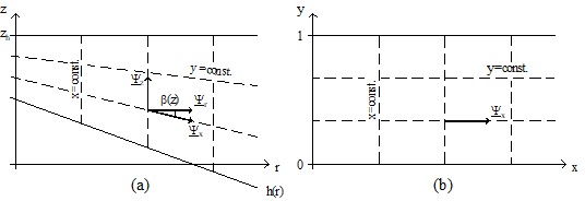 Because of the distortion of the computation grid, the transformation should only be used for slight hilly terrains.