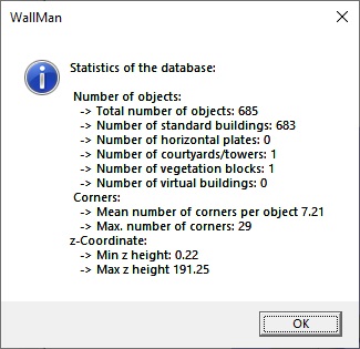 WallMan provides some general statistical information about the currently opened database. The dialog can be activated from the menu.
