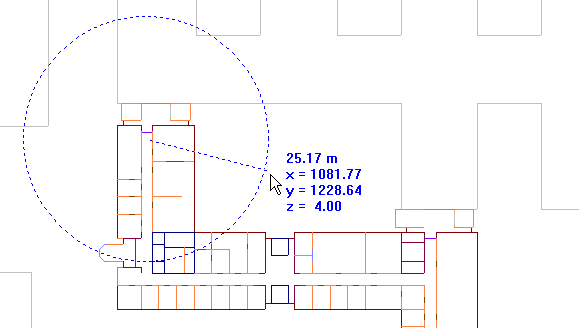 When the reference point selection is done and the mouse is moved, a blue dotted circle