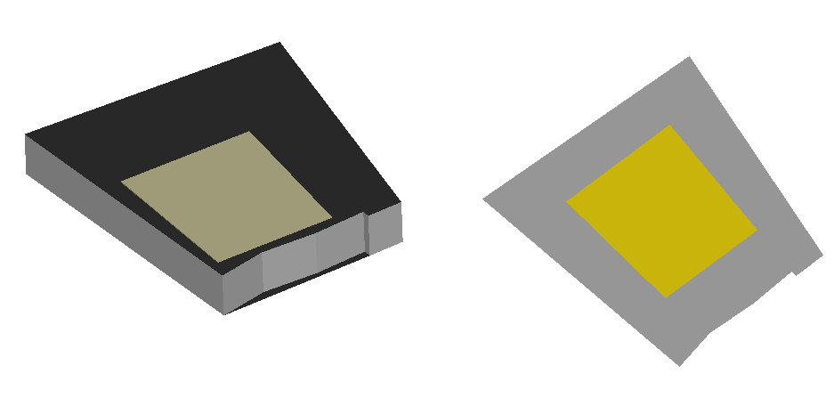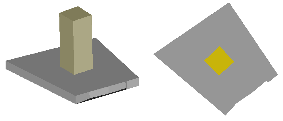 If partial overlapping occurs, the higher building always has higher priority. If there are two overlapping buildings with different heights, the larger height is considered in the overlapping section, except if there is a courtyard. Courtyards have a higher priority than normal buildings.