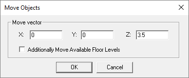 In the appearing dialog enter the values for the vector along which the objects should be shifted. The unit of the vector is meters and negative values are allowed.
