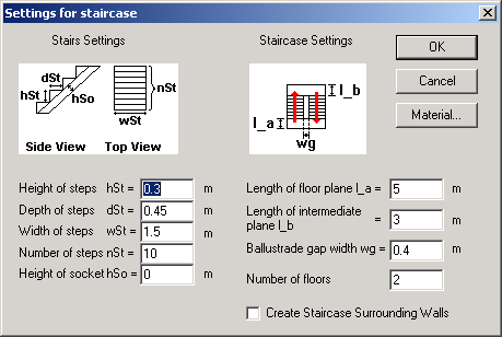 properties dialog. For the staircase itself, some additional parameters are necessary.
