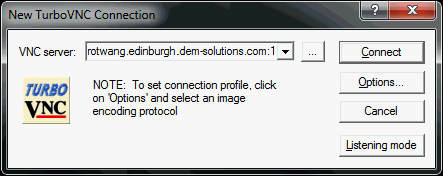 The advantage of using Turbo VNC is that you can use the advanced graphics card options (do not select Legacy Particle Display).