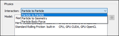 .dllfile (and any supporting files) has been moved into one of these locations, select the relevant Interaction Type for the plug-in (Particle-Particle, Particle-Geometry, or Particle Body Force).