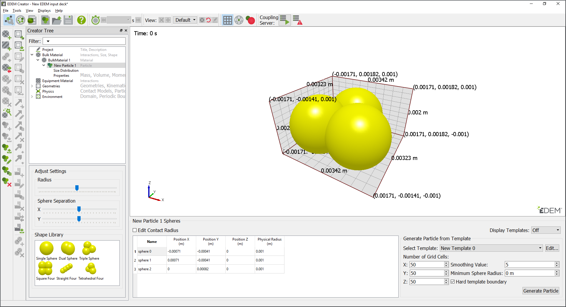 • You can modify the X, Y, and Z position of each sphere for the particle shape.