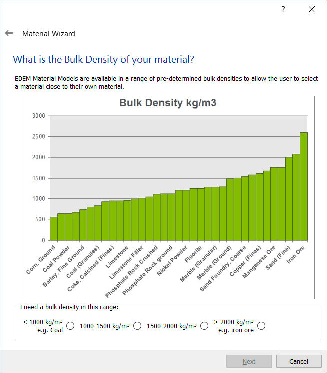 Note: You can select one of these materials.- The top material corresponds to the input angle of repose the best. You can, however, choose different materials from the list.