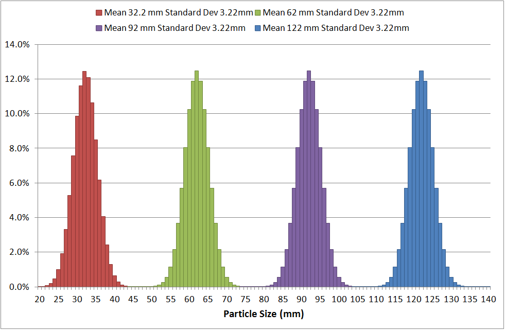 The GEMM Database comprises numerous material sets that are intended to cover a wide range of material sizes. Each has a size distribution centered on a median value.